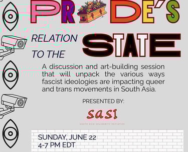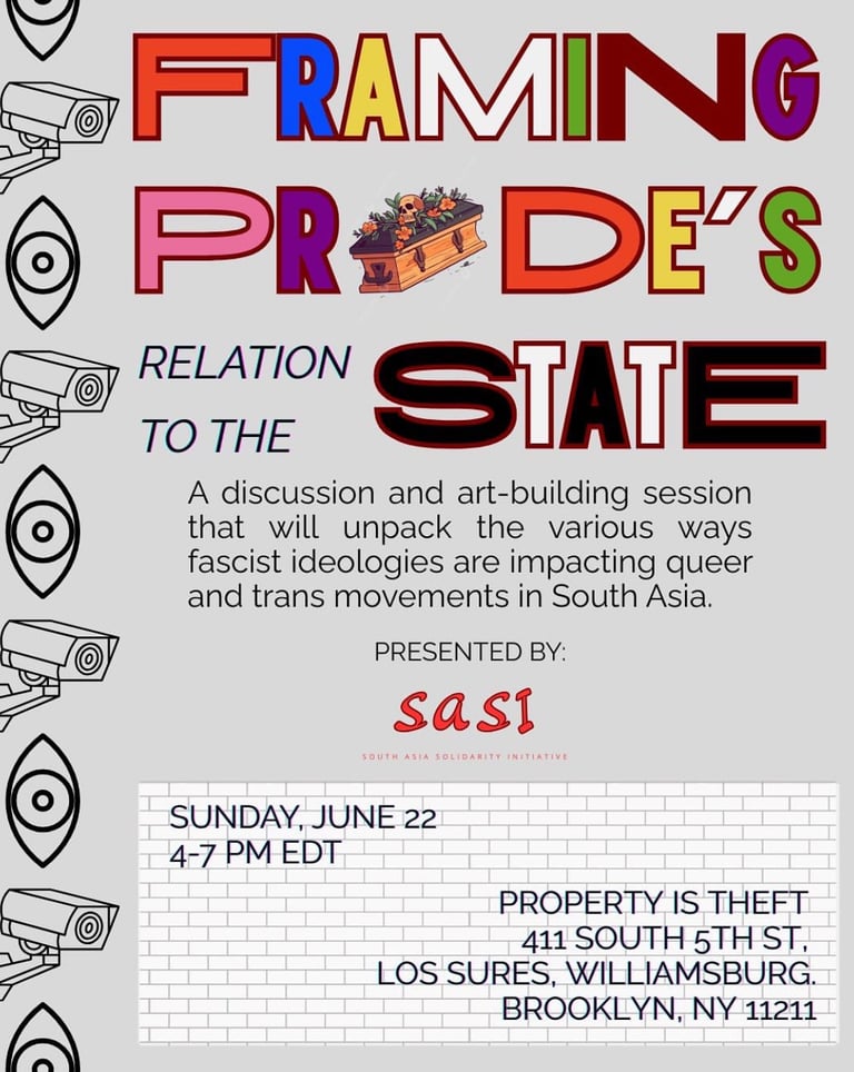 We shed light on queer & trans movements in India, Kashmir, and Bangladesh and our role among the diaspora. We tackled questions such as: How has both right wing fascism and liberalism used queer people and queer liberation to build its own hegemonic, imperial priorities? What does queer liberation look like for you?