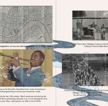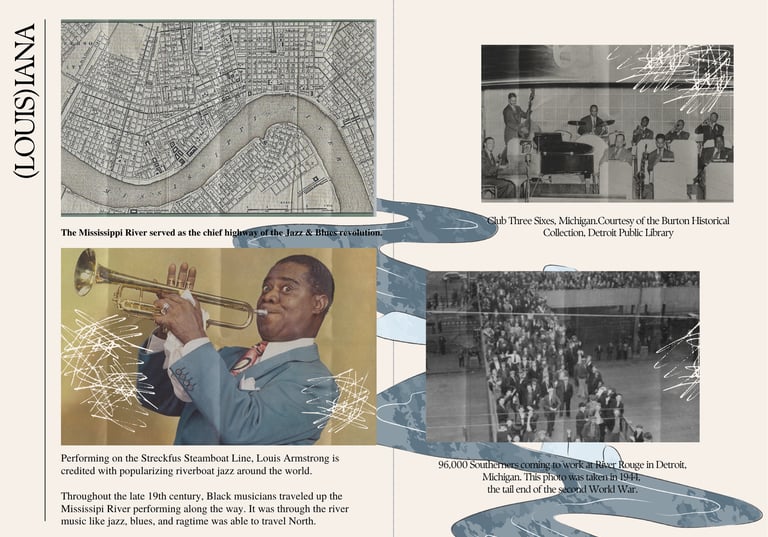 Page from my zine titled, 'Musicians as Unruly Placemakers.' The zine was created in tandem with an essay examining the Spatial Politics of Madness & Revolution through Jazz & Blues. This project is culmination of research and musical art that draws a line between metaphorical and literal uses of space with relation to madness. Can music answer the question of where we go when we go mad?